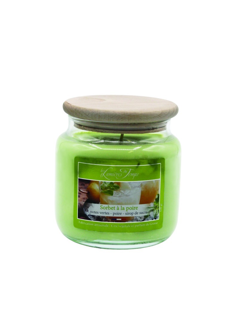 Přírodní francouzská svíčka Hruškový sorbet Les Lumières du Temps – svěží vůně hrušky a vanilky z Grasse, která probudí smysly a naplní domov lehkostí.