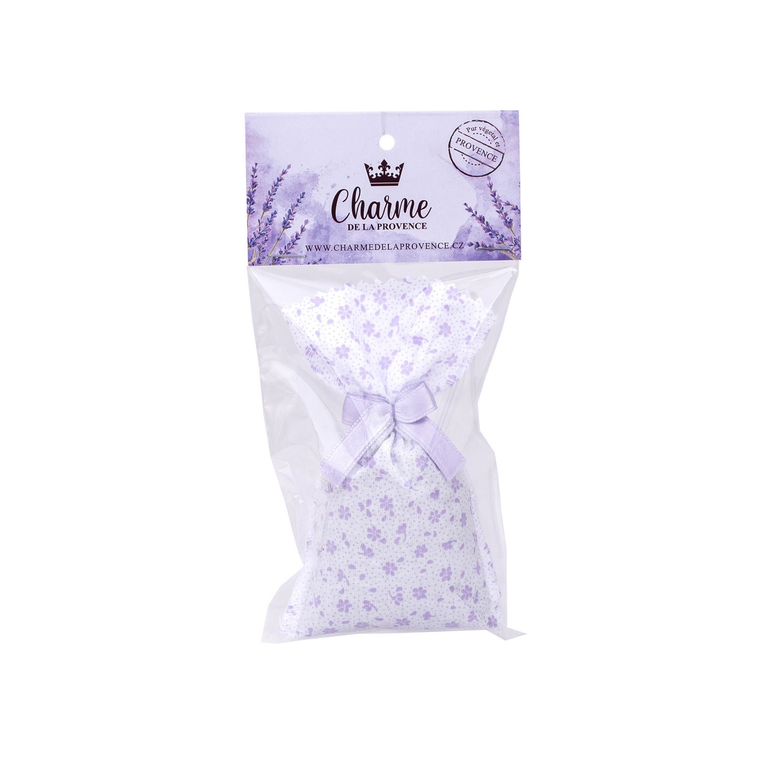 Plátěný pytlíček plněný sušeným květem levandule a levandinu . Pytlíček se používá k provonění skříní a zásuvek, odpuzuje moly a jeho vůně má léčivé a uklidňující účinky.