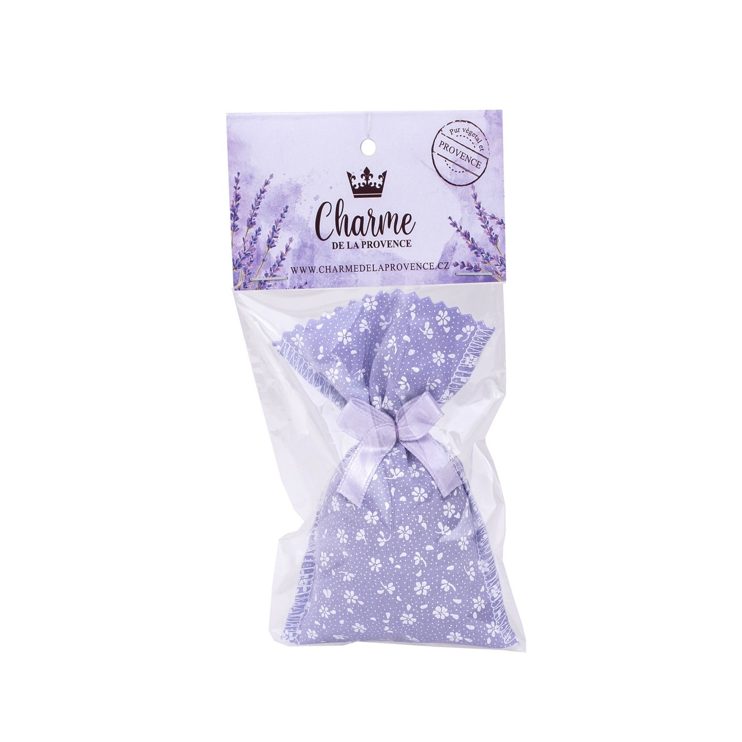 Plátěný pytlíček plněný sušeným květem levandule a levandinu . Pytlíček se používá k provonění skříní a zásuvek, odpuzuje moly a jeho vůně má léčivé a uklidňující účinky.