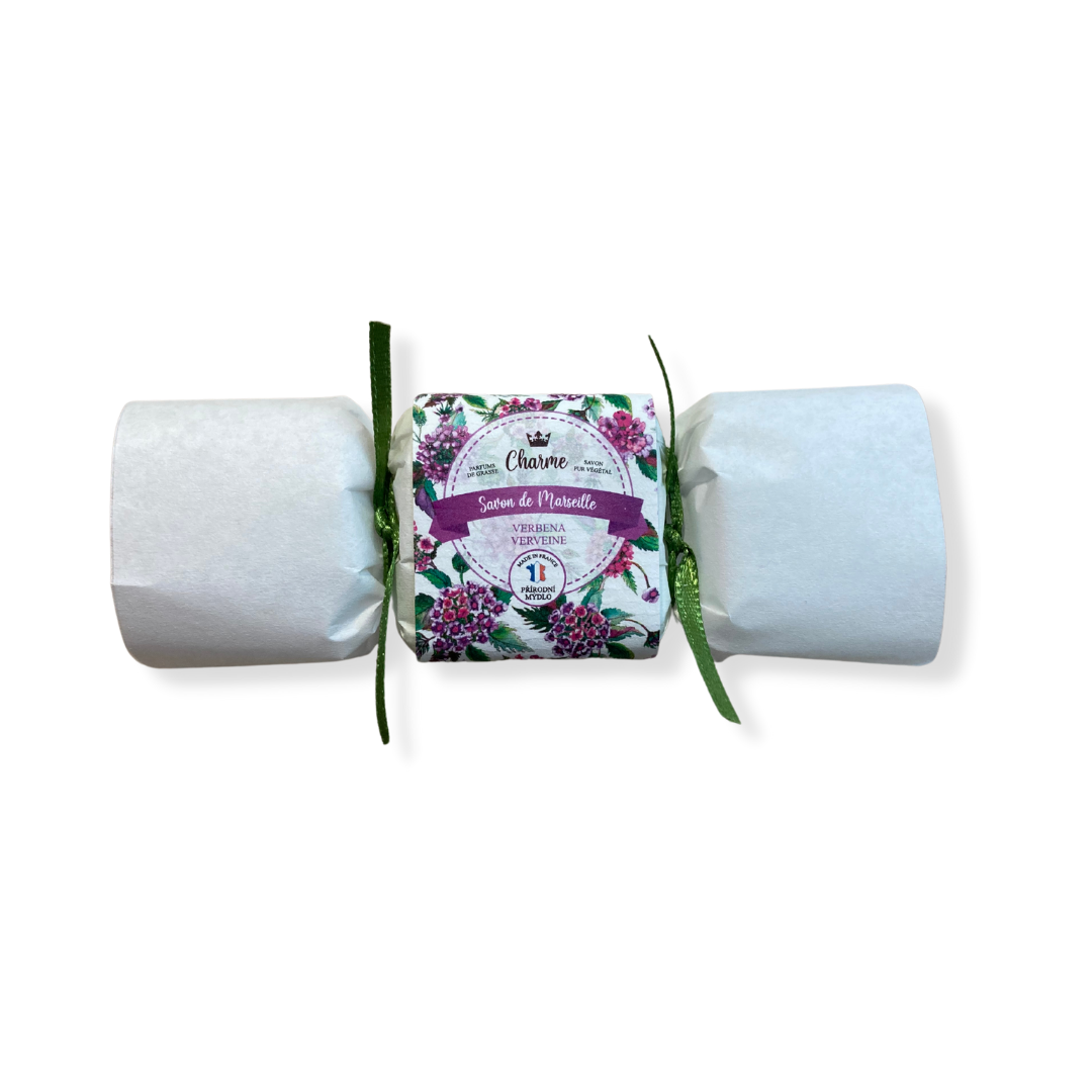 Francouzské luxusní přírodní mýdélko 25 g ve tvaru bonbónu zdobené mašlí se svěží citrónovou vůní verbeny, obsahuje bambucké máslo, 72 % přírodních olejů a je provoněno vůněmi z GRASSE . Vhodné jako krásný a voňavý dáreček.