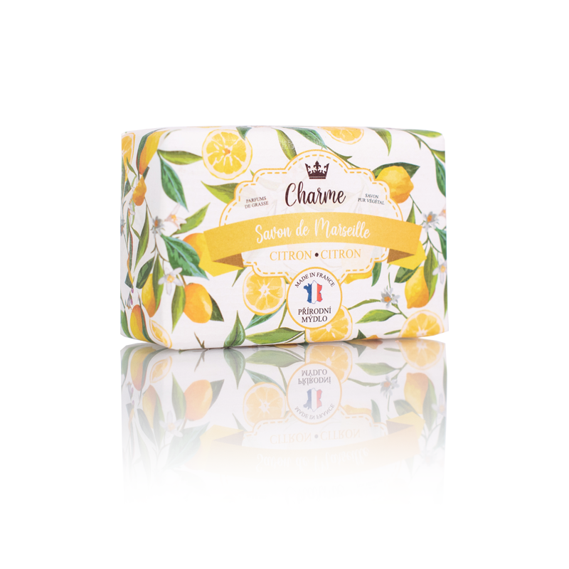 Francouzské luxusní přírodní mýdlo, vyrobené podle tradiční marseillské receptury, jejíž původ ve Francii sahá až do 17.století, ve tvaru 100 g obdélníku s vůní svěžího citronu . Mýdlo obsahuje bambucké máslo a 72% přírodních olejů je provoněno parfémy z GRASSE . Mýdlo blahodárně působí na pokožku, zanechává ji vláčnou a nevysušenou.