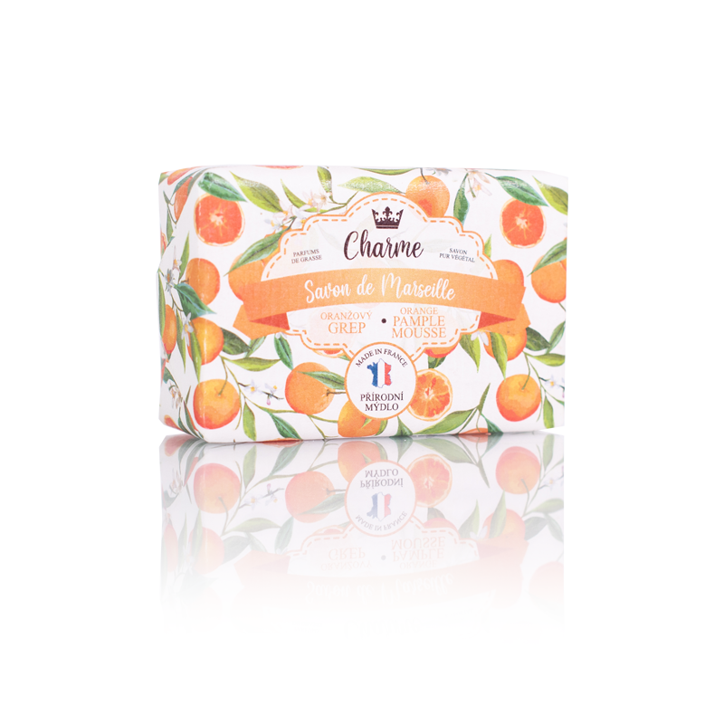 Francouzské luxusní přírodní mýdlo ,vyrobené podle tradiční marseillské receptury, jejíž původ ve Francii sahá až do 17.století, ve tvaru 100 g obdélníku, s velmi svěží letní vůní grepu ,která přináší příjemný pocit okamžitého osvěžení a čistoty. Mýdlo obsahuje bambucké máslo a 72% přírodních olejů je provoněno parfémy z GRASSE . Mýdlo blahodárně působí na pokožku ,zanechává ji vláčnou a nevysušenou.