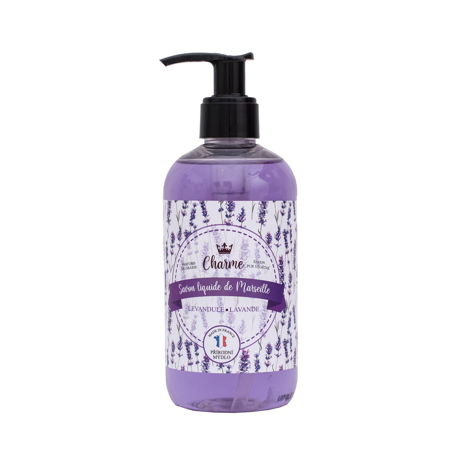 Francouzské luxusní tekuté mýdlo,vyrobené podle tradiční marseillské receptury,jejíž původ ve Francii sahá až do 17.století, s uklidňující vůní levandule, parfémované vůní pocházející z města parfémů Grasse.Obsahuje přírodní oleje, které blahodárně působí na pokožku,zanechávájí ji vláčnou a nevysušenou. Mýdlo je v plastovém obalu s dávkovačem.