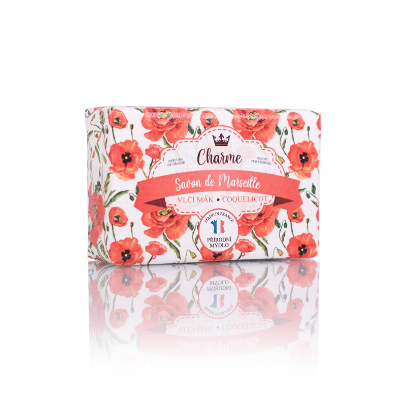 Francouzské luxusní přírodní mýdlo, vyrobené podle tradiční marseillské receptury, jejíž původ ve Francii sahá až do 17.století, ve tvaru 100 g obdélníku, s vůní rozkvetlých letních luk a mezí plných vlčích máků ,tato vůně je velmi oblíbená pro svoji lehkost a eleganci. Mýdlo obsahuje bambucké máslo a 72% přírodních olejů je provoněno parfémy z GRASSE .Mýdlo blahodárně působí na pokožku, zanechává ji vláčnou a nevysušenou.